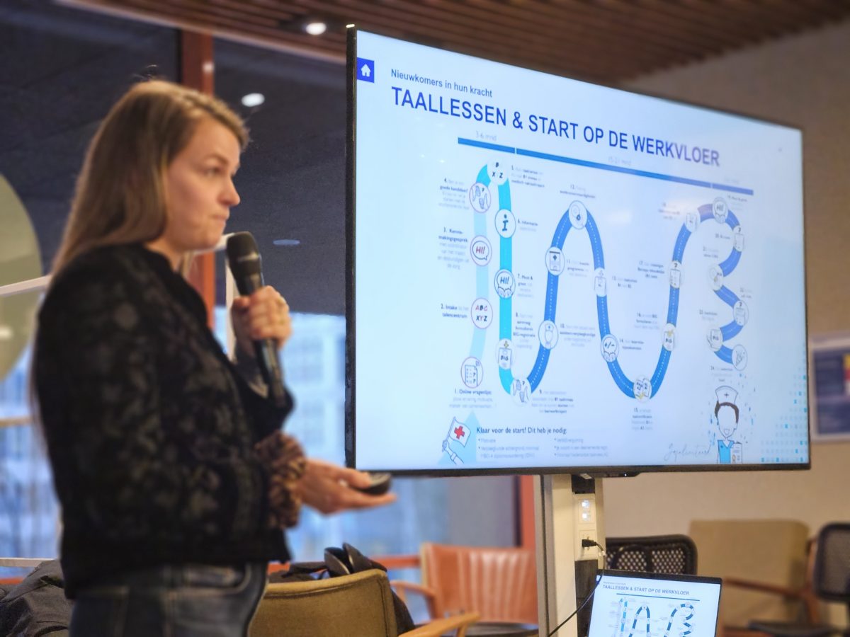 Nieuwkomers in hun kracht is een leerwerk-traject dat ervaren zorgtalent duurzaam naar de werkvloer begeleidt. De aanpak ontstond tijdens de coronacrisis in het UMCG en bewees daar zijn waarde: inmiddels zijn zo’n vijftig nieuwkomers via deze route duurzaam aan het werk. De aanpak is in ziekenhuizen in het hele land uitgerold, van Groningen tot de Randstad.